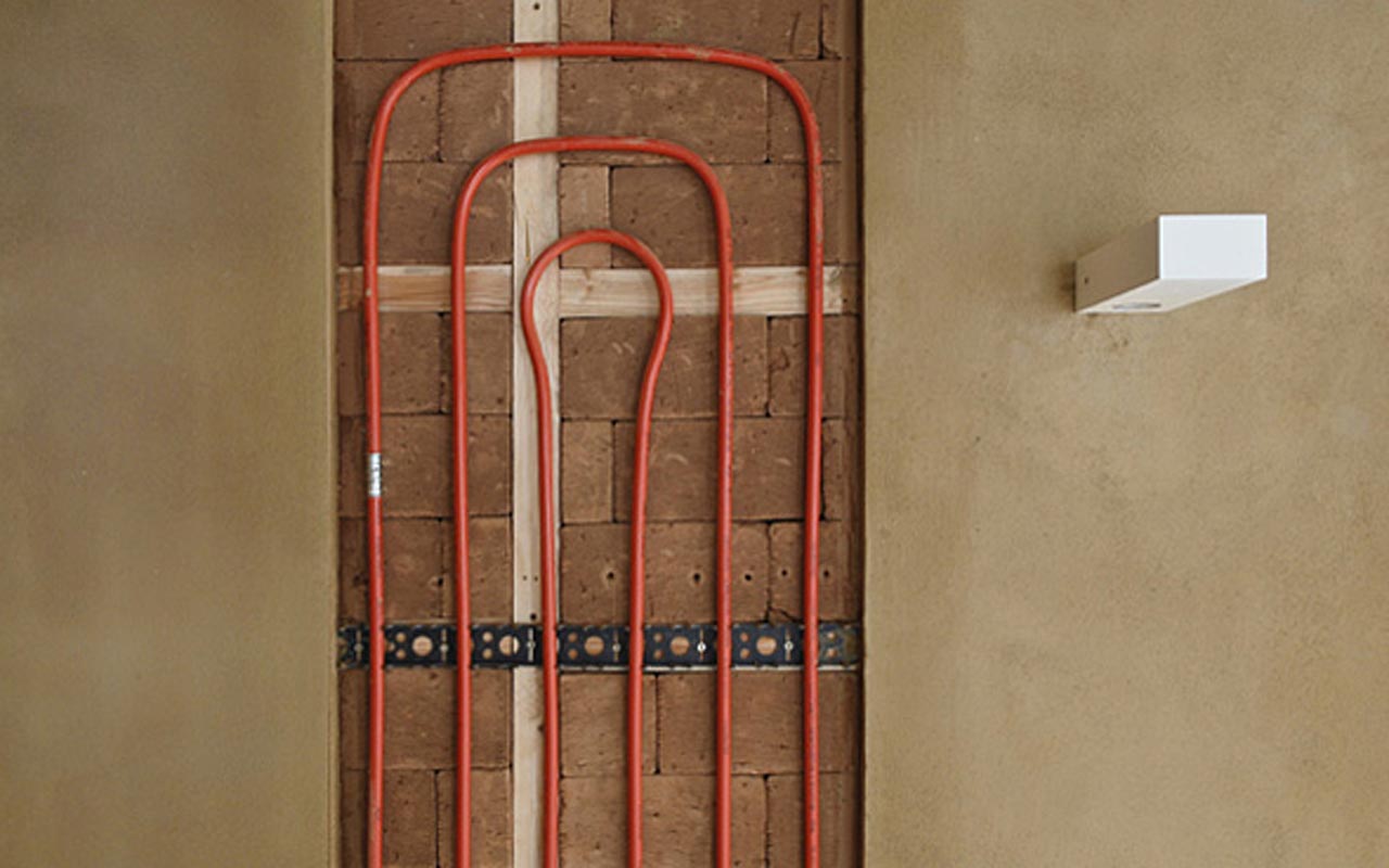 Im Sommer wird einfach kaltes Wasser durch die Rohre geleitet – ein geräuschlose Klimaanlage ohne unangenehme Zugluft. Ein weiterer wichtiger Grund war die zu erwartende Energieersparnis: mit einer Wandheizung kann die Raumtemperatur bei gleichem Wärmeempfinden um bis zu 3°C abgesenkt werden, was eine Energieersparnis von bis zu 18% bedeutet.